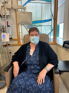 Cathy had her first chemo infusions this past Thursday, October 13, 2022, at Dartmouth-Hitchcock Medical Center in Lebanon, NH. That morning they met with the oncologist, who adjusted her medication schedule to start slow, so she did not return for a second infusion on Friday. Her infusions will be on Thursdays going forward.
